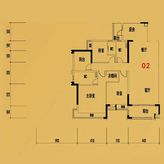 依云天匯B01戶型 3室面積155.00平米