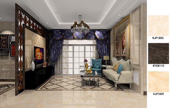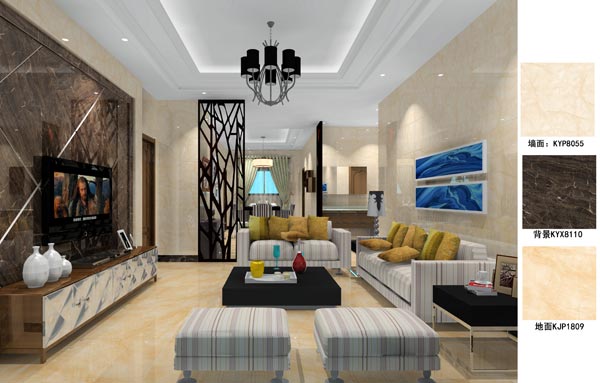 金艾陶瓷磚應用效果:徐州開元翡翠灣D戶型裝修效果鑒賞