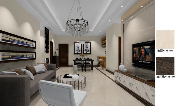 金艾陶瓷磚應用效果:佛山季園和府115方現代風格戶型裝修效果鑒賞