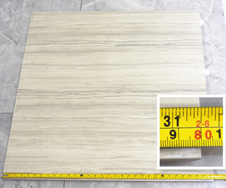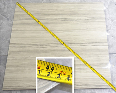 在測評現(xiàn)場,測試這款法國灰木紋尺寸是800mmX800mm的方形瓷磚,測評人員使用標(biāo)準(zhǔn)尺子量度,得出結(jié)果是長800mm*寬800mm,對角線為1131mm,做工與規(guī)格精準(zhǔn)、分毫不差,可展露出金艾陶瓷磚,在生產(chǎn)研發(fā)上工藝嚴(yán)謹(jǐn),尺寸規(guī)格把控一貫出色。