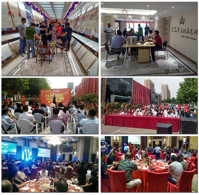 臨近中午十分,各位嘉賓上臺(tái)為開業(yè)活動(dòng)剪彩,宣告金艾陶瓷磚山東膠州專賣店正式營(yíng)業(yè)。活動(dòng)午宴在五星級(jí)大酒店喜來(lái)登進(jìn)行,喜來(lái)登大酒店是當(dāng)?shù)刈畲笞詈玫木频辏鸢沾纱u總是把最好的產(chǎn)品和服務(wù)帶給消費(fèi)者,從酒店的選擇上亦能看出其對(duì)細(xì)節(jié)方面追求完美,力爭(zhēng)最好。