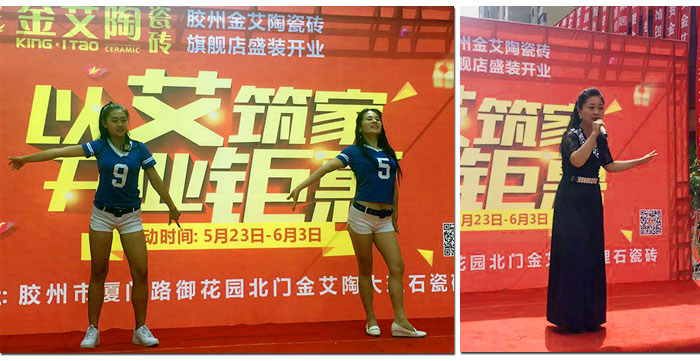 精彩的開場(chǎng)節(jié)目過(guò)后,金艾陶瓷磚品牌營(yíng)銷總經(jīng)理羅勝首先為本次開業(yè)活動(dòng)致辭。羅總對(duì)金艾陶瓷磚山東膠州專賣店的盛大開業(yè)表示祝賀,同時(shí)也期望金艾陶瓷磚山東膠州專賣店能將更多好產(chǎn)品和好服務(wù)帶給膠州的消費(fèi)者。隨后,金艾陶瓷磚山東膠州專賣店總經(jīng)理李鵬飛為活動(dòng)致辭。臺(tái)上歌舞繚繞,臺(tái)下座無(wú)虛席,熱鬧非凡。