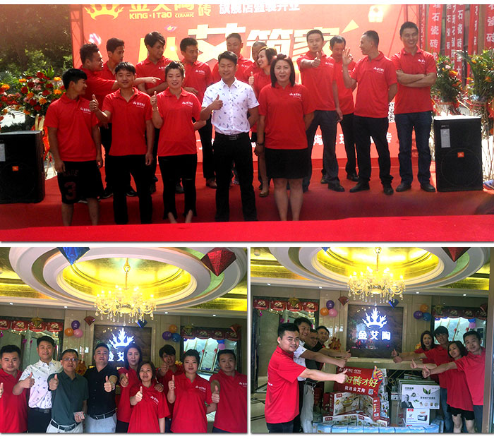 豎幅林立,禮炮齊鳴,6月3日,金艾陶瓷磚山東膠州專賣店迎來(lái)了盛大開業(yè)。陶瓷一線品牌金艾陶瓷磚品牌營(yíng)銷總經(jīng)理羅勝、金艾陶瓷磚山東膠州專賣店總經(jīng)理李鵬飛、富凱建筑工程勞務(wù)有限公司董事長(zhǎng)李軒、秀奉勞務(wù)工程有限公司董事長(zhǎng)岳秀鳳、眾恒勞務(wù)工程有限公司董事長(zhǎng)申一空、山東青島四川商會(huì)副會(huì)長(zhǎng)張邦偉以及眾多膠州設(shè)計(jì)裝修界的朋友、新老客戶們共同出席了此次開業(yè)活動(dòng)。